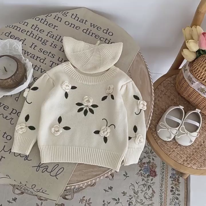 Wholesale Korean Version Autumn Winter Children's Unisex Sweater Foreign Style Knitted Pullover Coat 100% Cotton Floral Pattern Baby Top