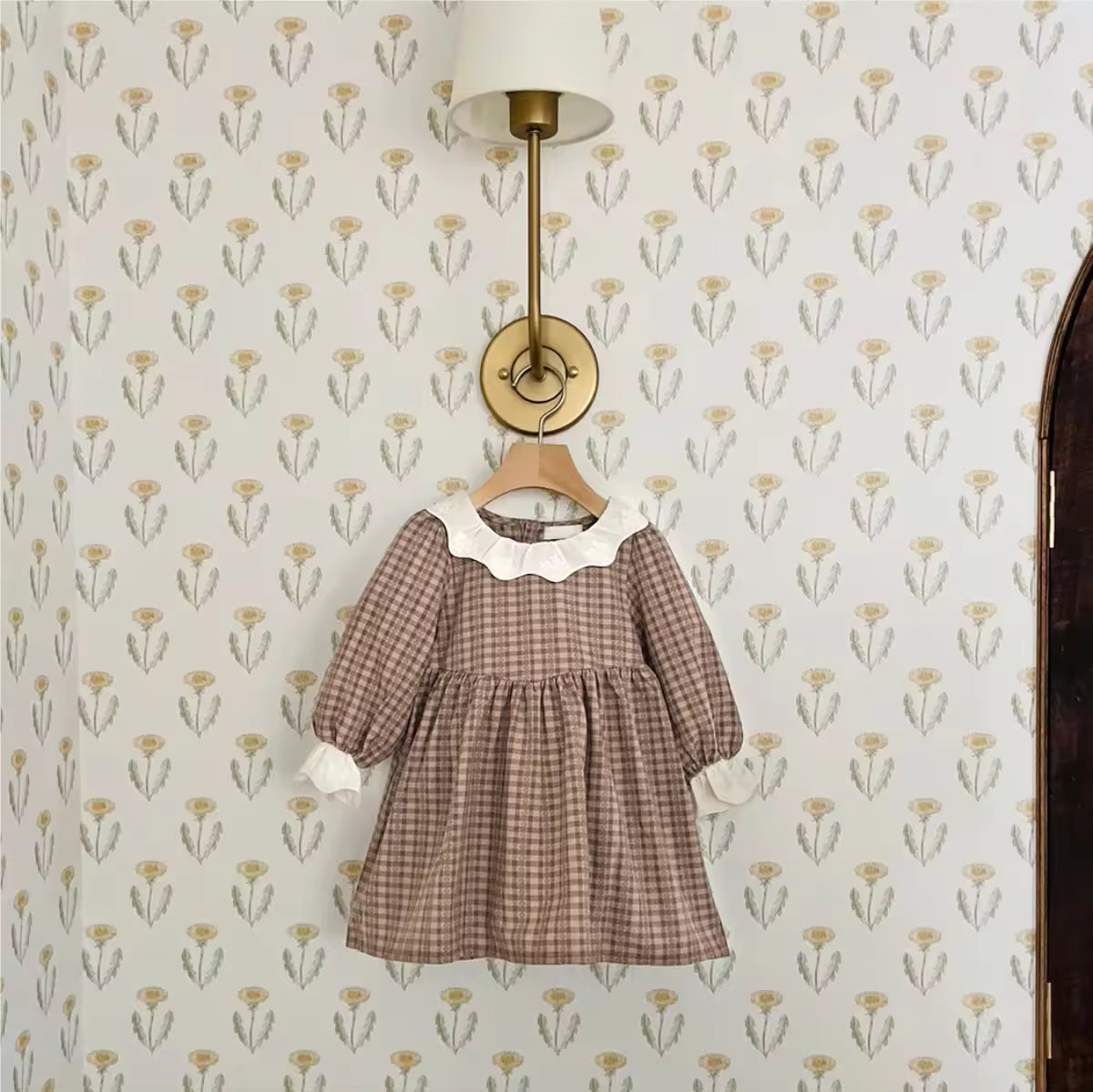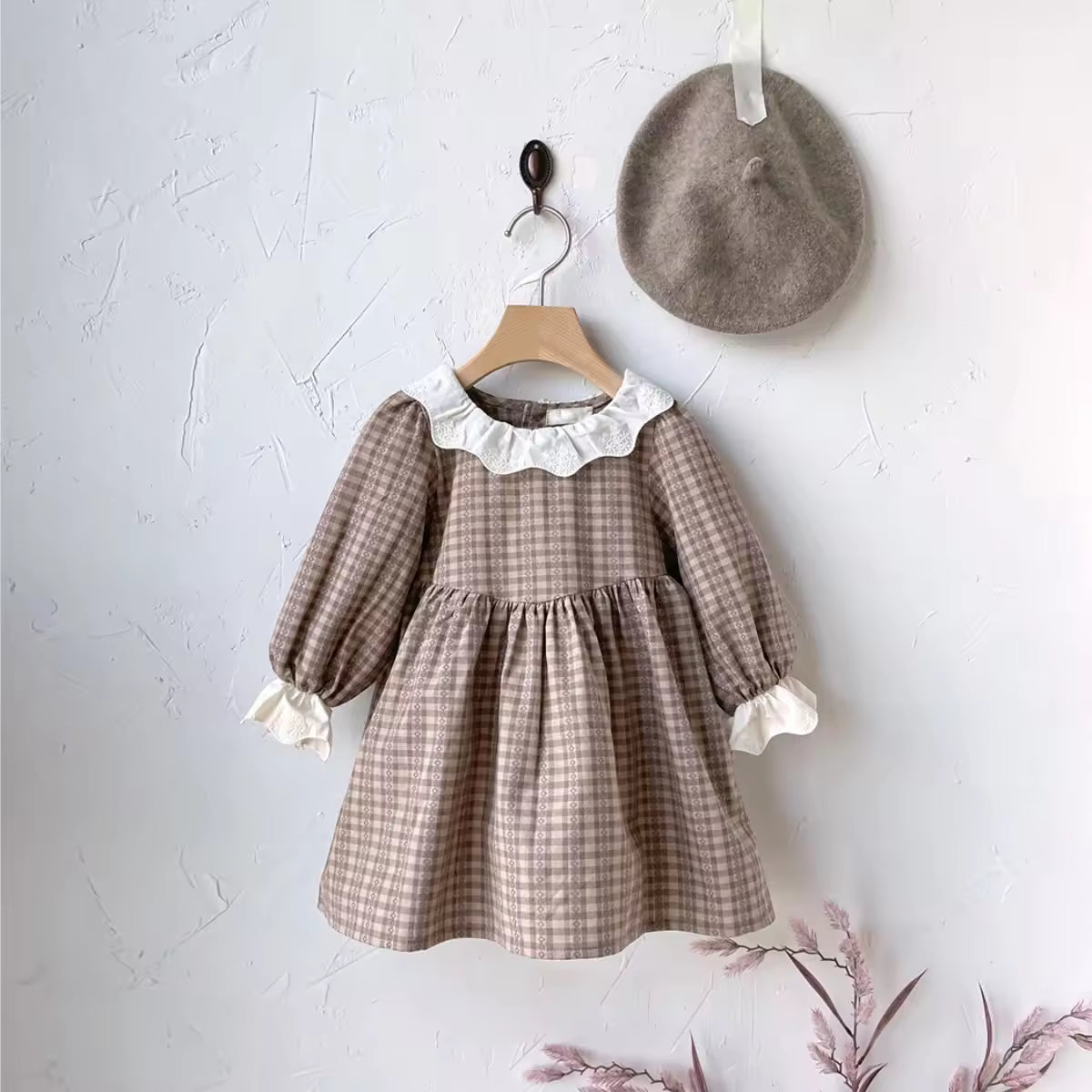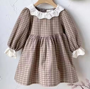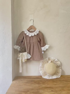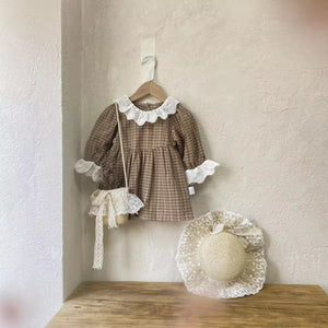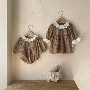 Baby Girl Baby Girl Autumn Winter Retro Pattern Lace Lace Collar Onesie Baby Long Sleeve Jumpsuit Romper