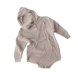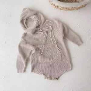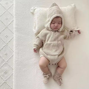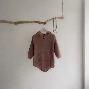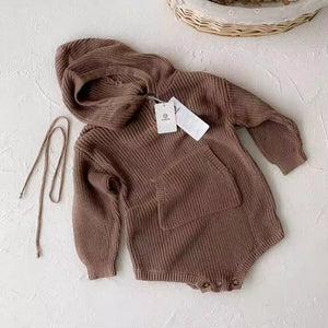 2025 Autumn and Winter Baby Jumpsuit 100% Cotton Hooded Sweater Set for Boys Girls Big Pocket Knitted Sweater for Newborns