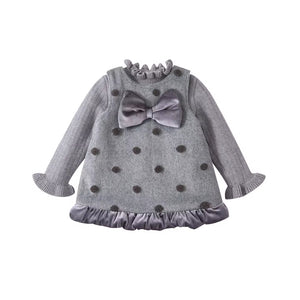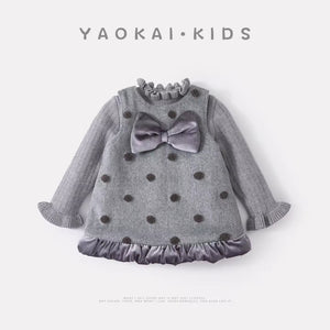 2025 Autumn and Winter Infant Baby Dresses Cotton Casual Worsted Dot Dress Suit Baby Girl Polo Sweater Base Shirt Two-Piece Set