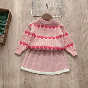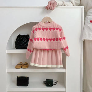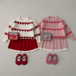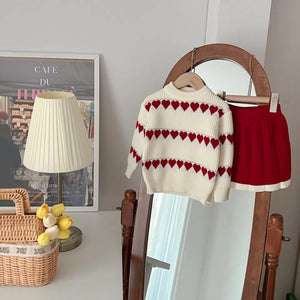 2025 Autumn and Winter New Style Baby Girl Clothing Set Girls Western Style Love Jacquard Knitted Baby Girl Two-Piece Set