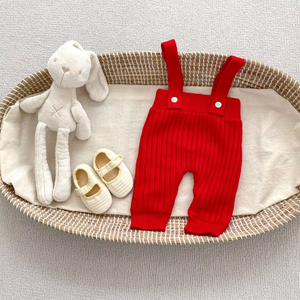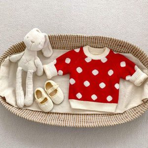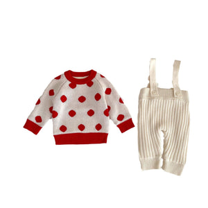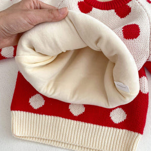 Wholesale Winter New Baby Knitted Overalls Set for Children and Babies Fleece and Thickened Polka Dot Long-sleeved Sweater Two-piece Set