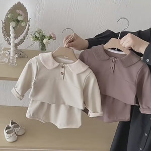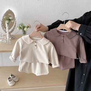 Baby Girl's Clothing Set Spring and Autumn Suit Western-style Cute Outfit Solid Breathable Sweatshirt Bread Pants Two-piece Set
