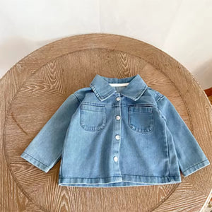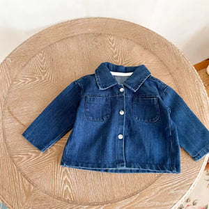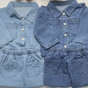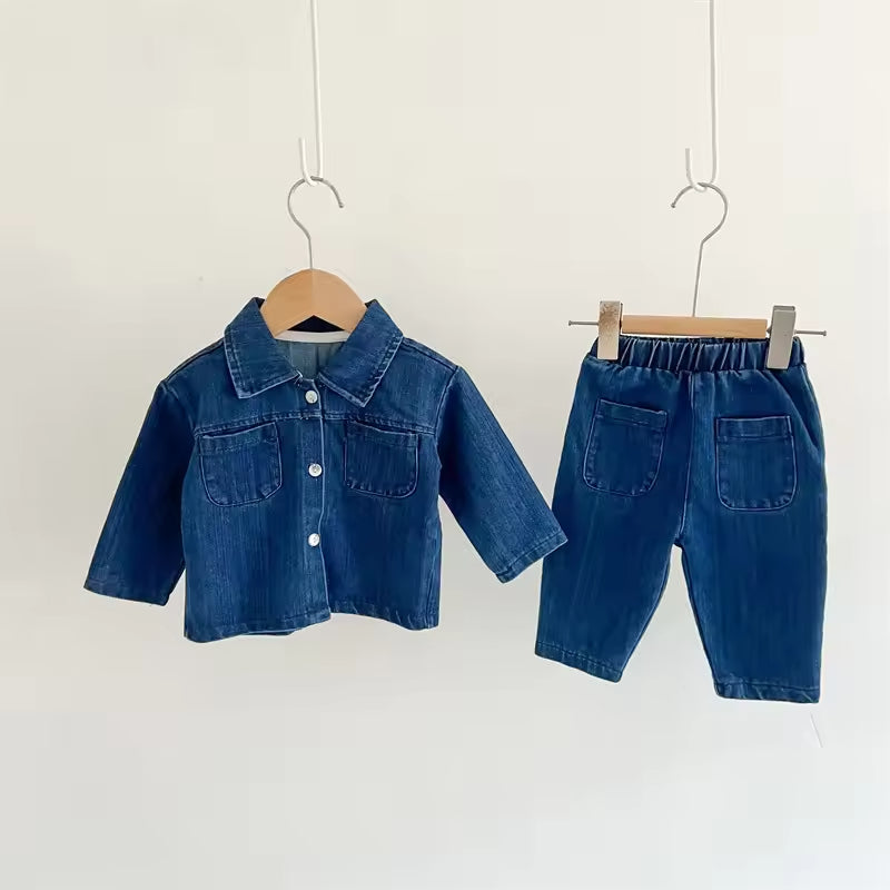 Spring and Autumn Baby Boys and Girls Clothing Set Long-sleeved Denim Shirt Coat Trousers Two-piece Baby Suit