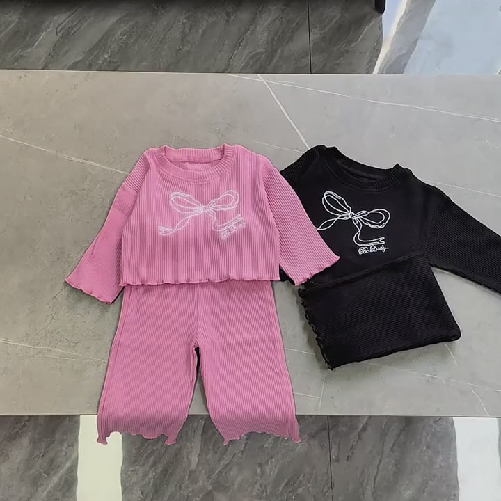 Early Autumn Baby Girl Clothing Set Korean Style Casual Breathable Long-sleeved Wide-leg Pants Set Bow Round Neck Baby Suit