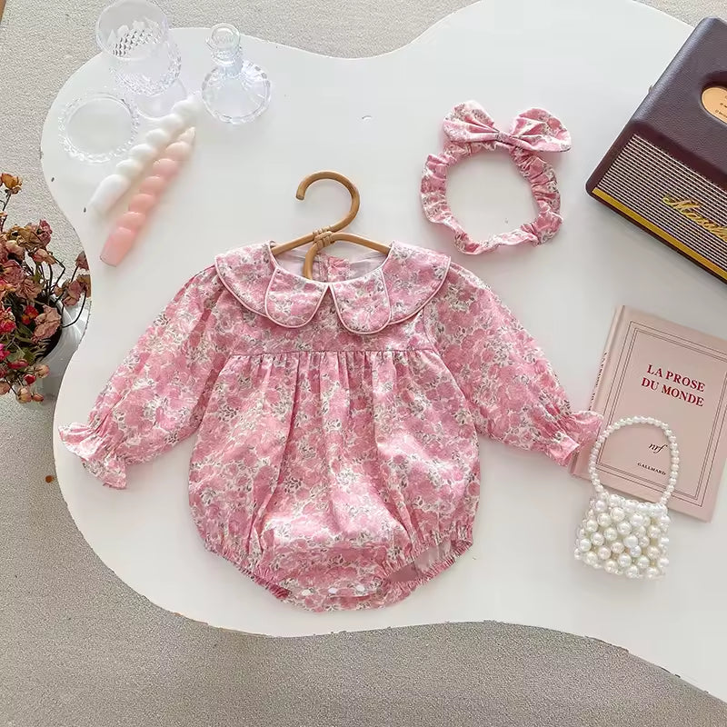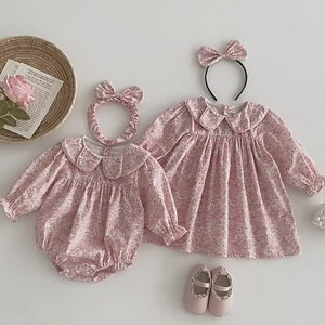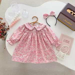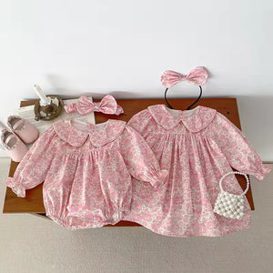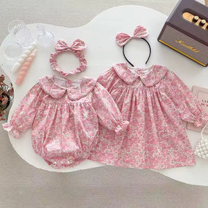 2025 Autumn Sweet Princess Dress for Baby Girls Long Sleeve Triangle Climbing Lace Floral Doll Collar Cute Sister Outfit