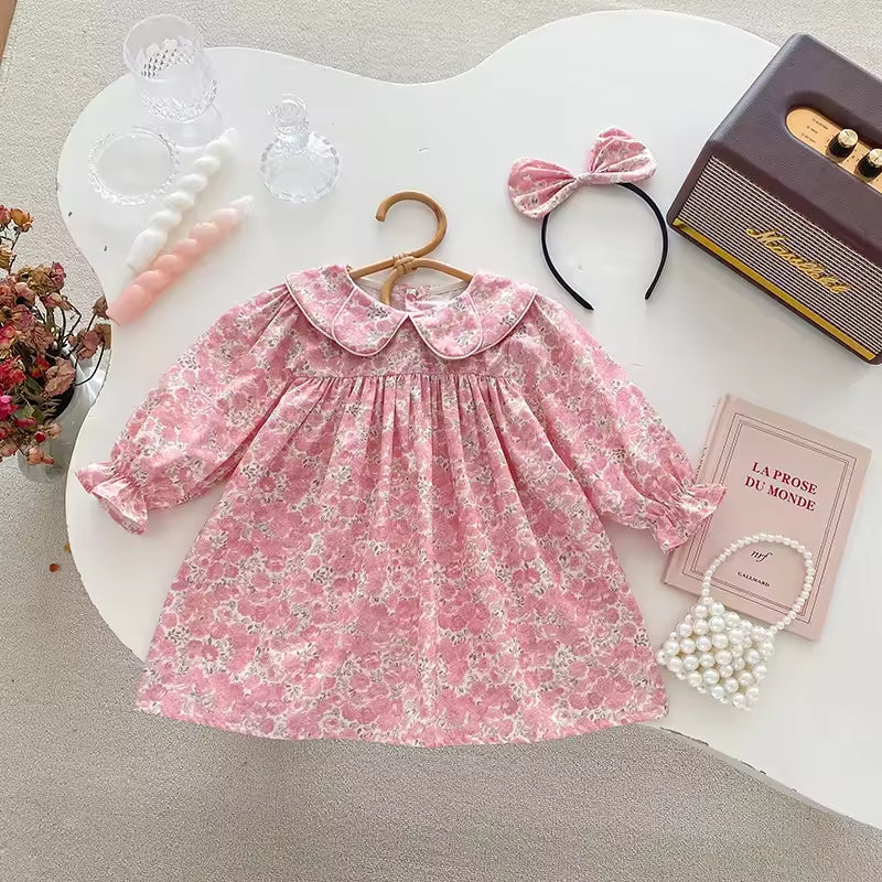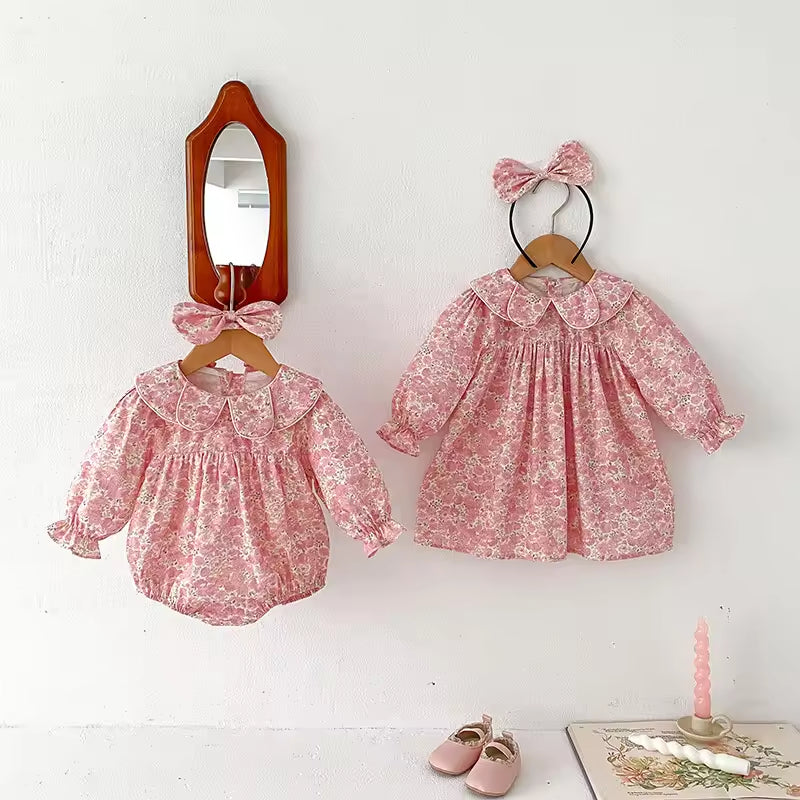 Home Baby Dresses 2025 Autumn Sweet Princess Dress for Baby Girls Long Sleeve Triangle Climbing Lace Floral Doll Collar Cute Sister Outfit