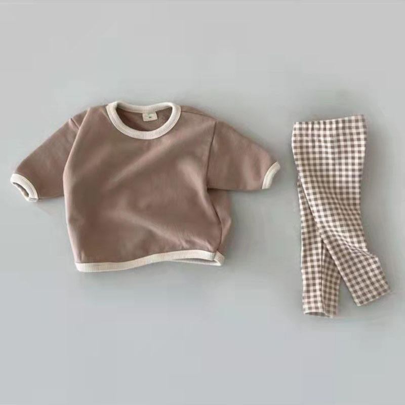 Wholesale Ins Baby Spring and Autumn Long Sleeve Leisure Set Baby Simple Color Hoodie Pants Two-piece Set