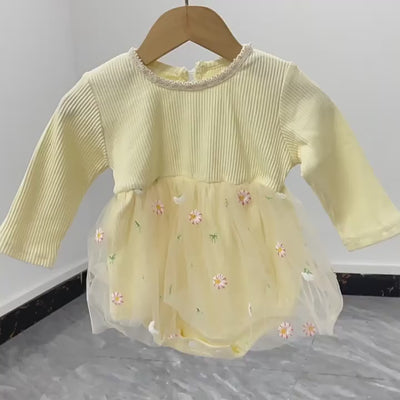 Autumn Ins Korean Style Baby Romper Toddler Casual Floral Knitted Mesh Princess Pouch Skirt Sweet romper
