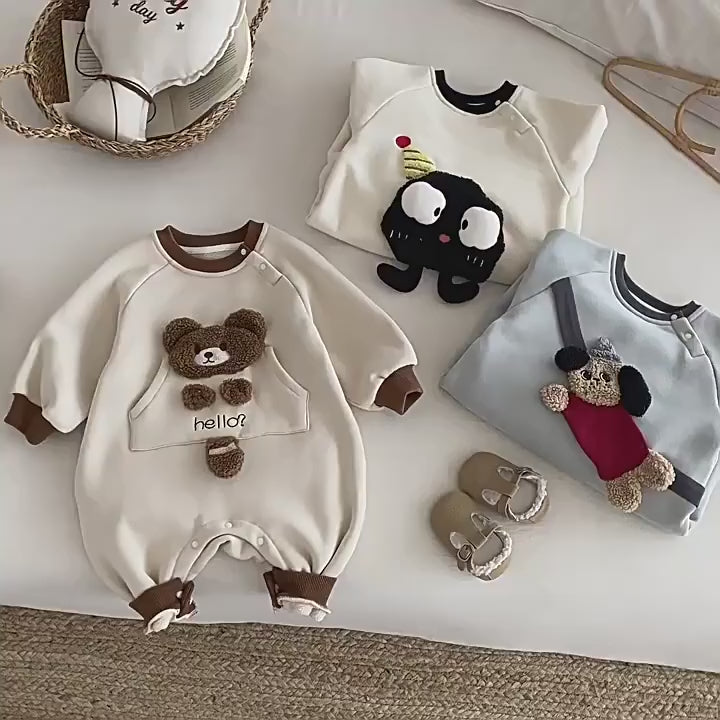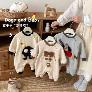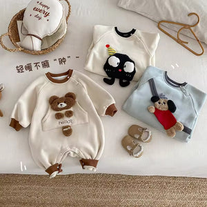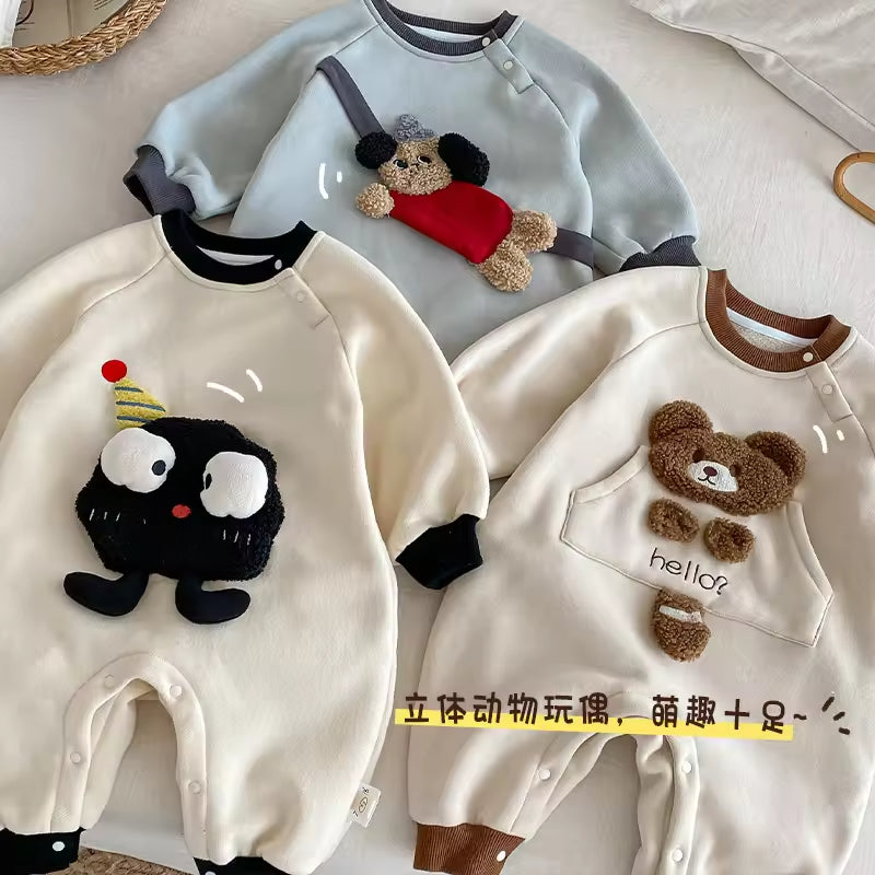 Baby Cute Fun Jumpsuit 2025 New Winter Western Style Three-Dimensional Cartoon Thick Climbing Clothes Newborn Button