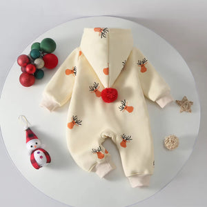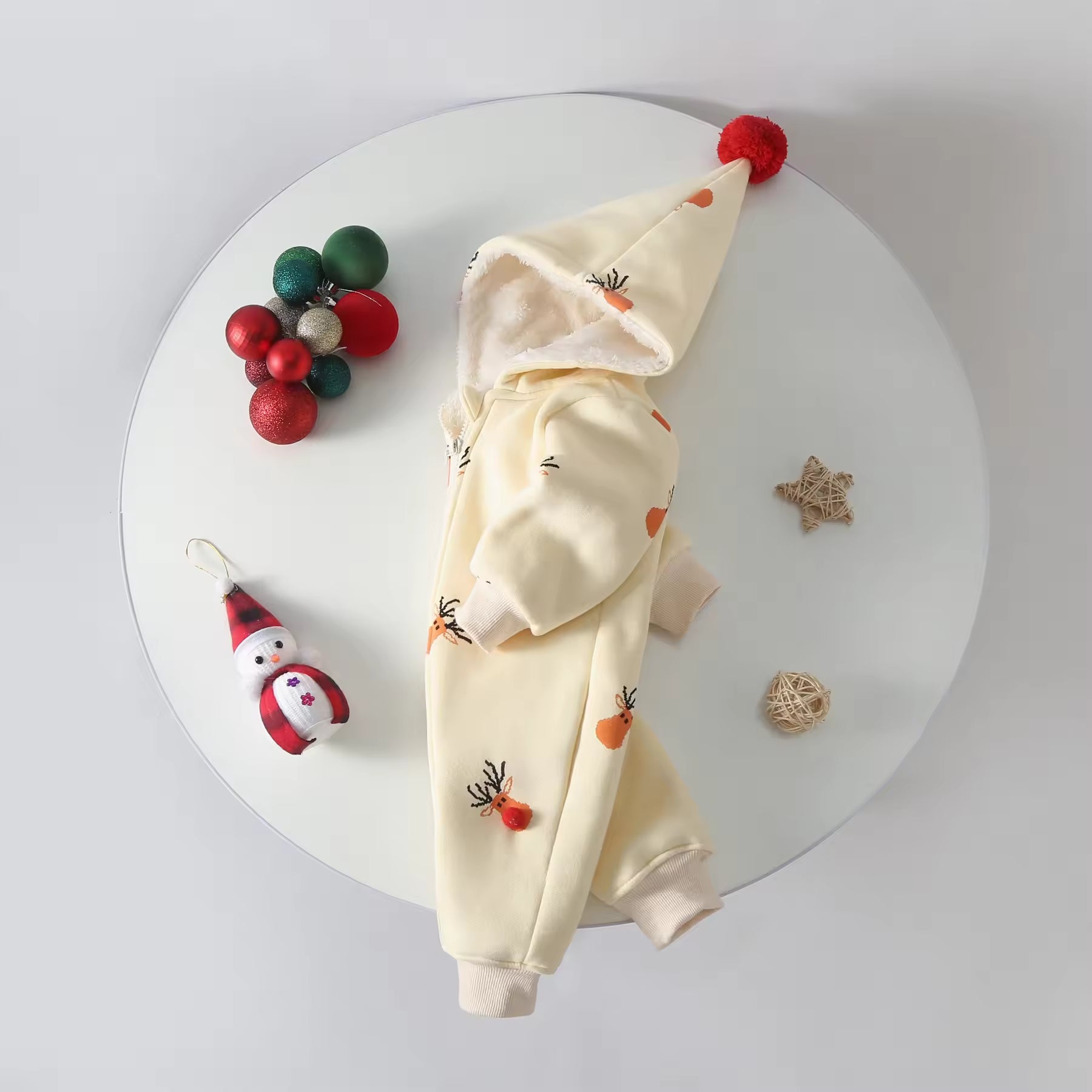 Baby Autumn and Winter One-piece Suit with Fleece Winter Coat Warm Hooded Zipper Christmas Fleece Baby Climbing Suit