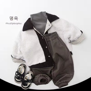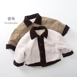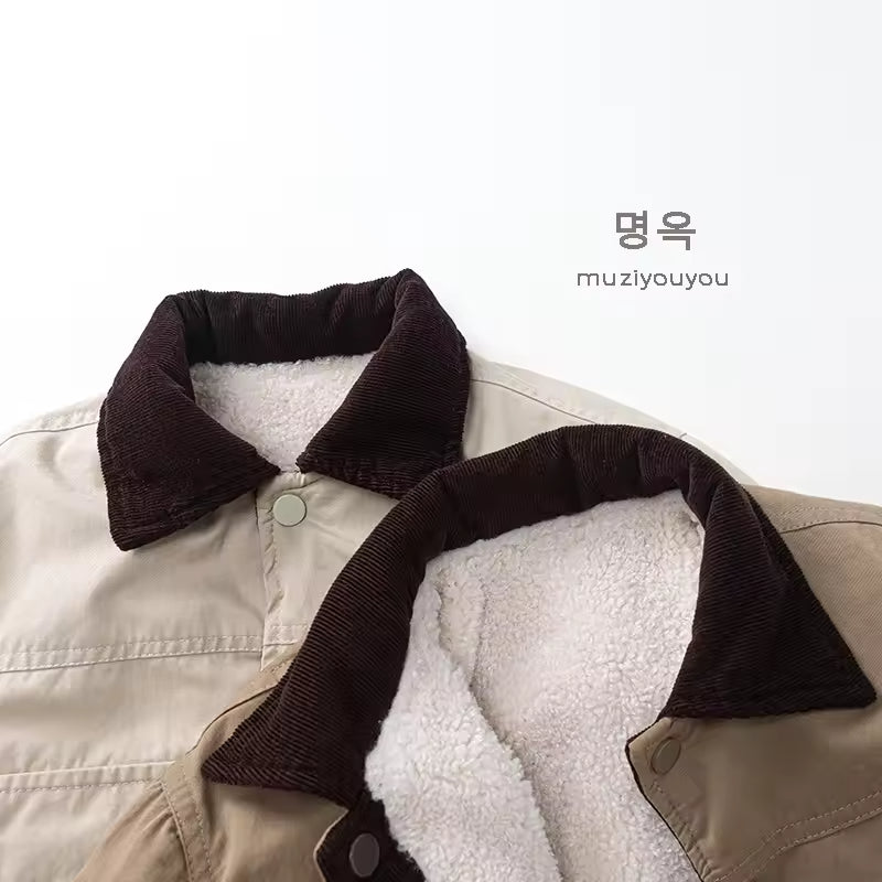 2025 Winter Children's Clothes Casual Fleece-lined Overcoat Boys and Girls Japanese Korean Style Thickened Baby Tops