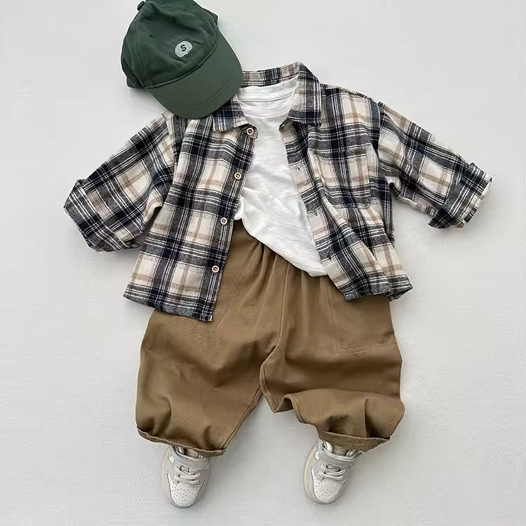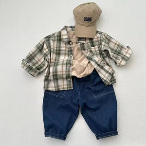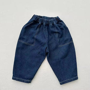 Korean Spring and Autumn New Children's Knitted Long Pants Stylish Retro Loose and Casual Jeans for Both Boys and Girls