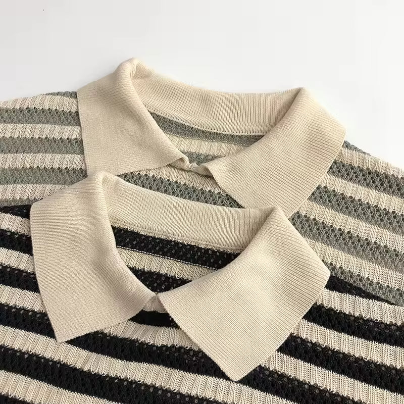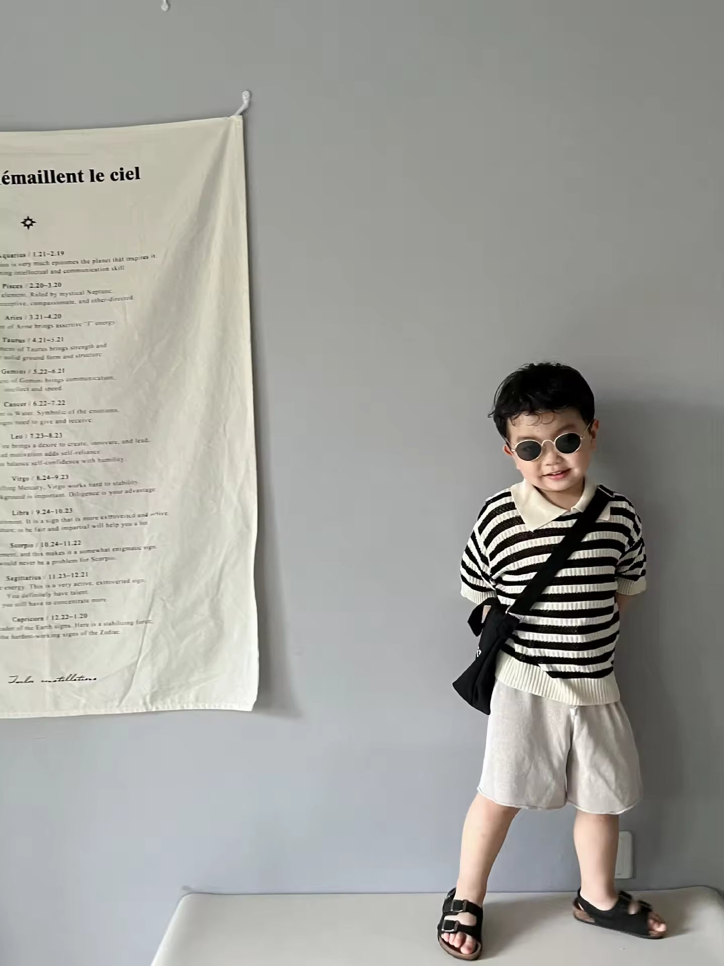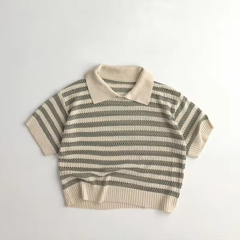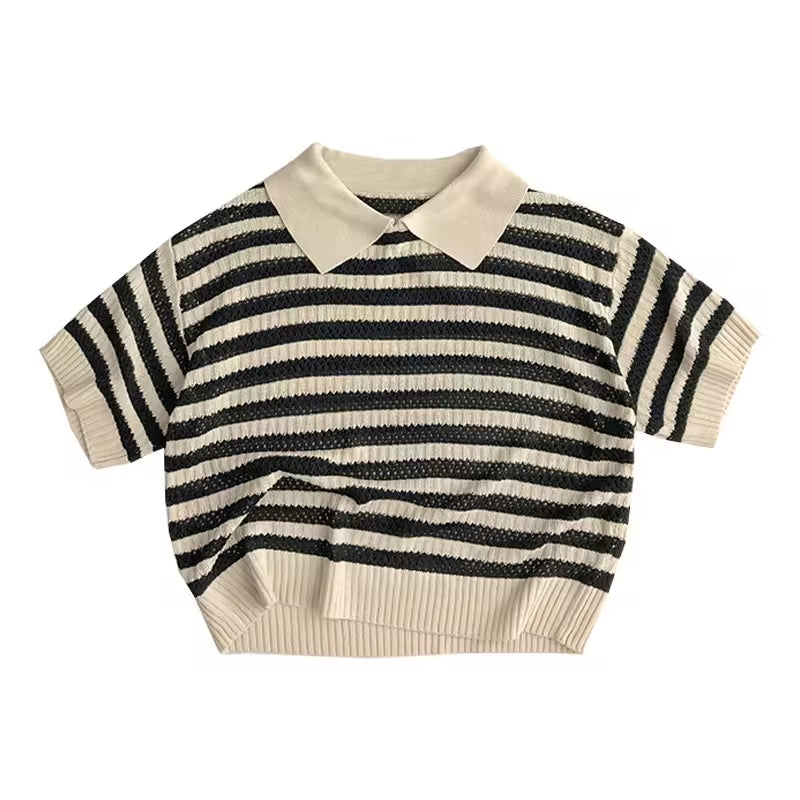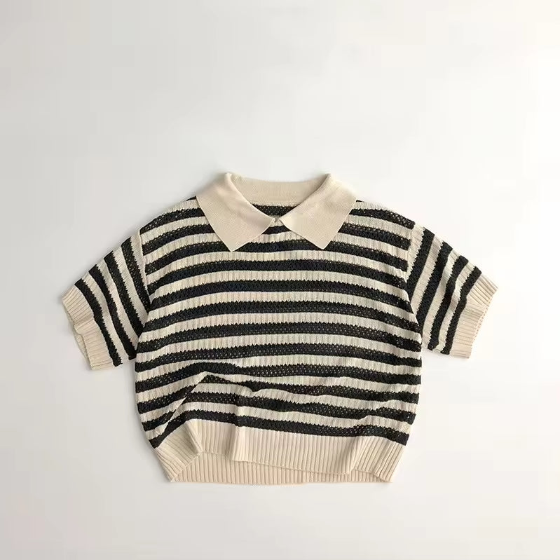 Spring and Summer Children's Hollow Sweater Western Style Fashion Baby Striped Short Sleeve T-shirt Lbc