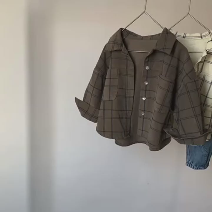 2025 Autumn New Collection Long-sleeved Corduroy Checked Shirts for Boys and Girls Children's Retro Style Casual Tops