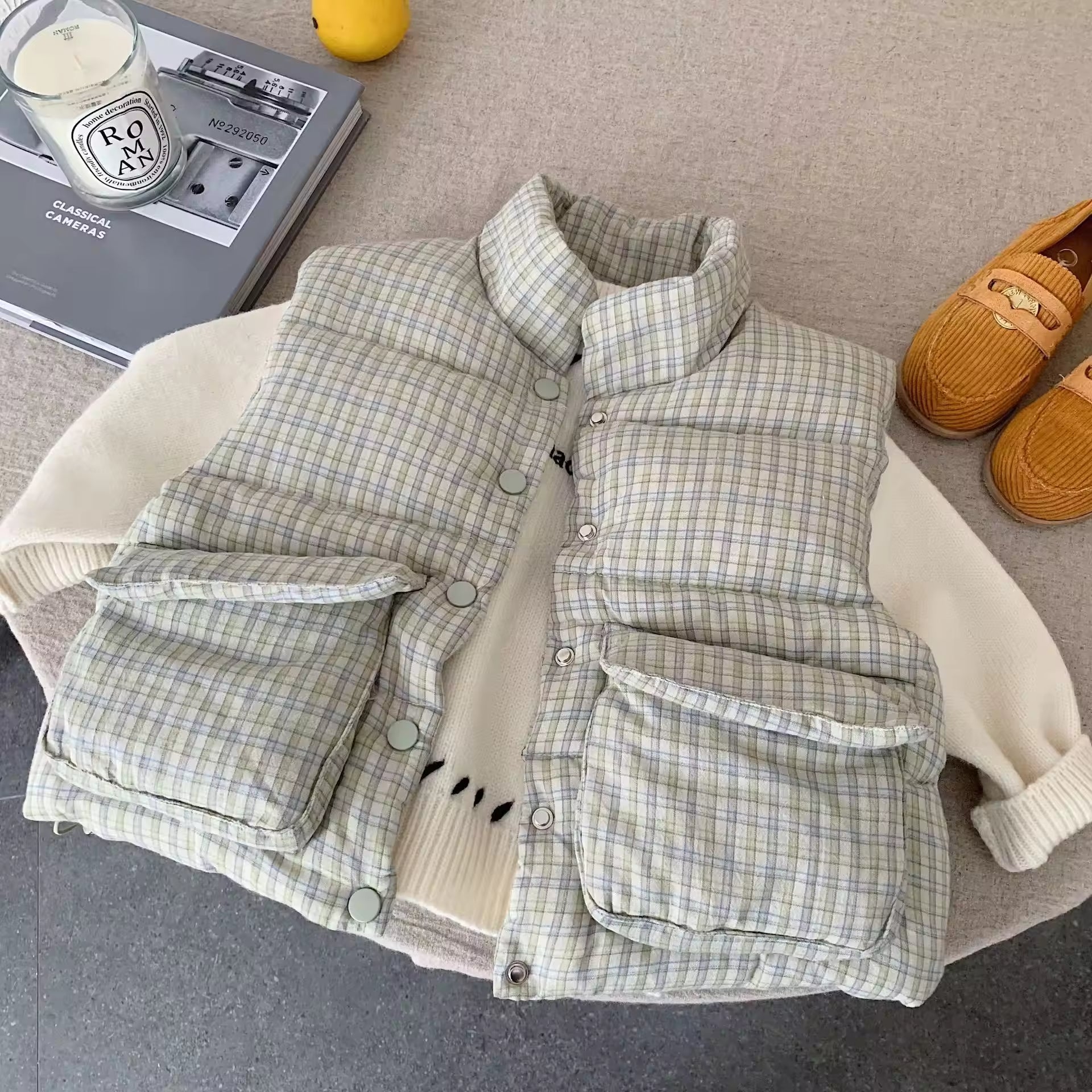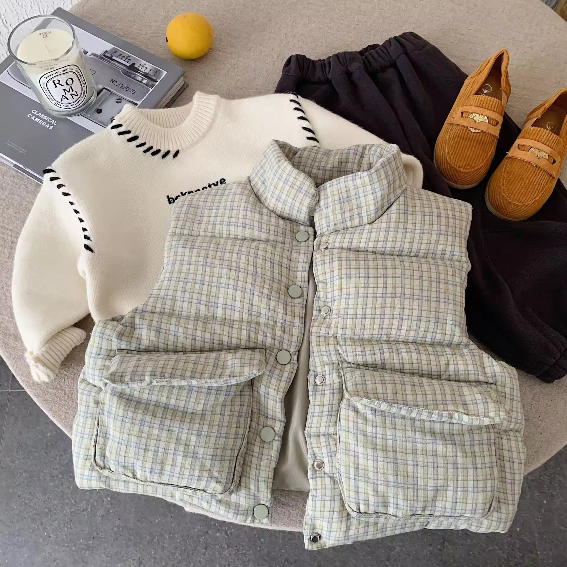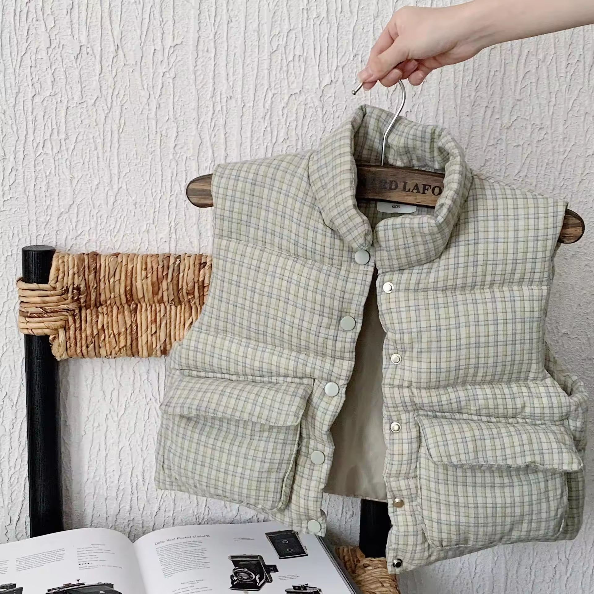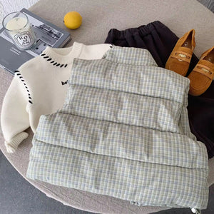 2025 Children's Casual Plaid Cotton Vest for Boys and Girls Winter Sleeveless Breathable Outerwear Baby Thickened Cotton-padded