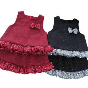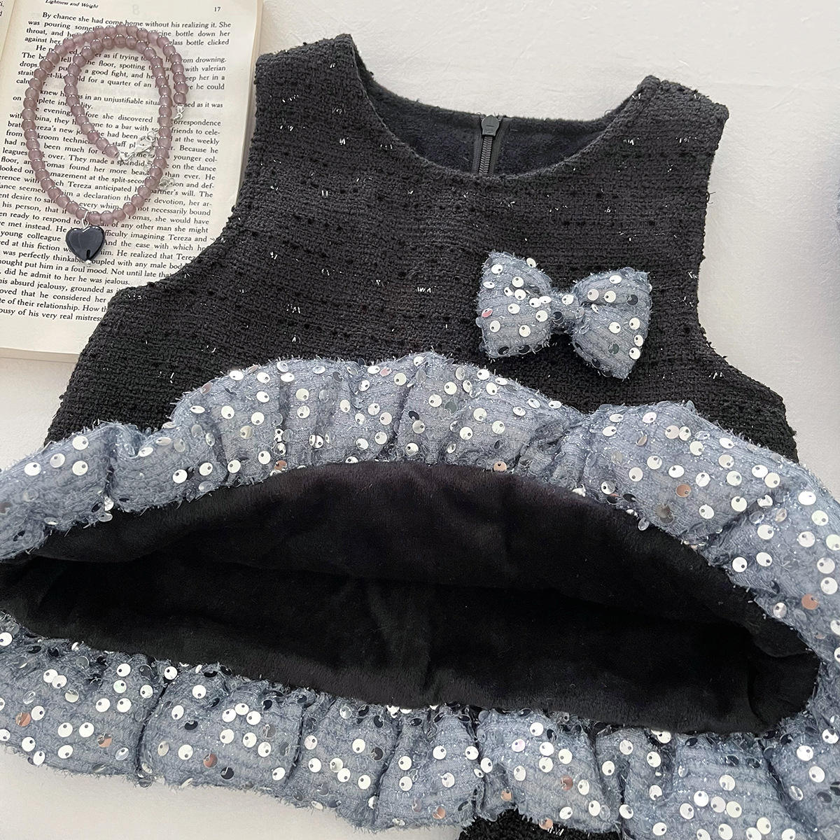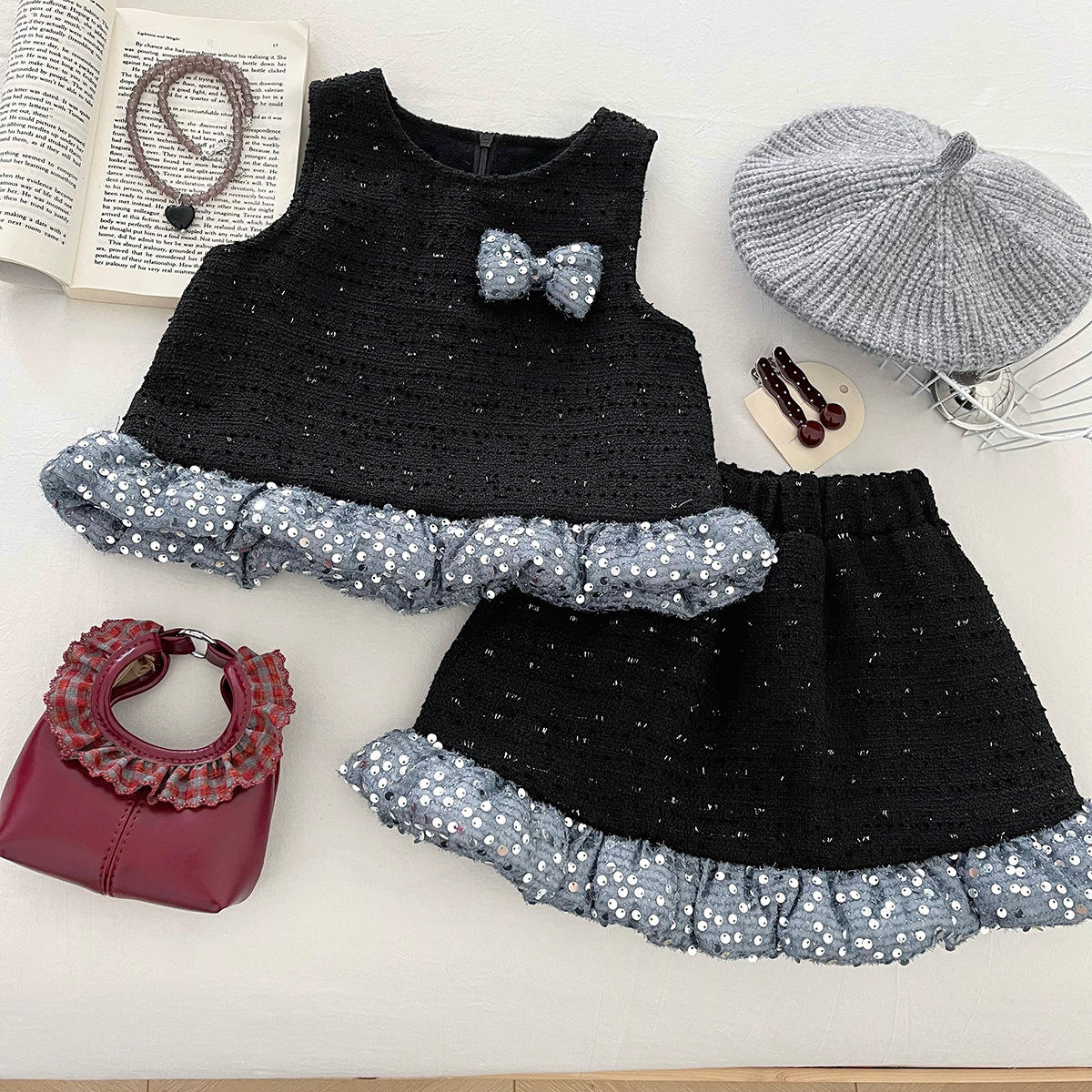 Wholesale 2025 Girl's Clothing Set Winter Two-piece Set Lace Vest Top Fleece-lined Short Skirt Solid Worsted Fabric Warm Princess Design