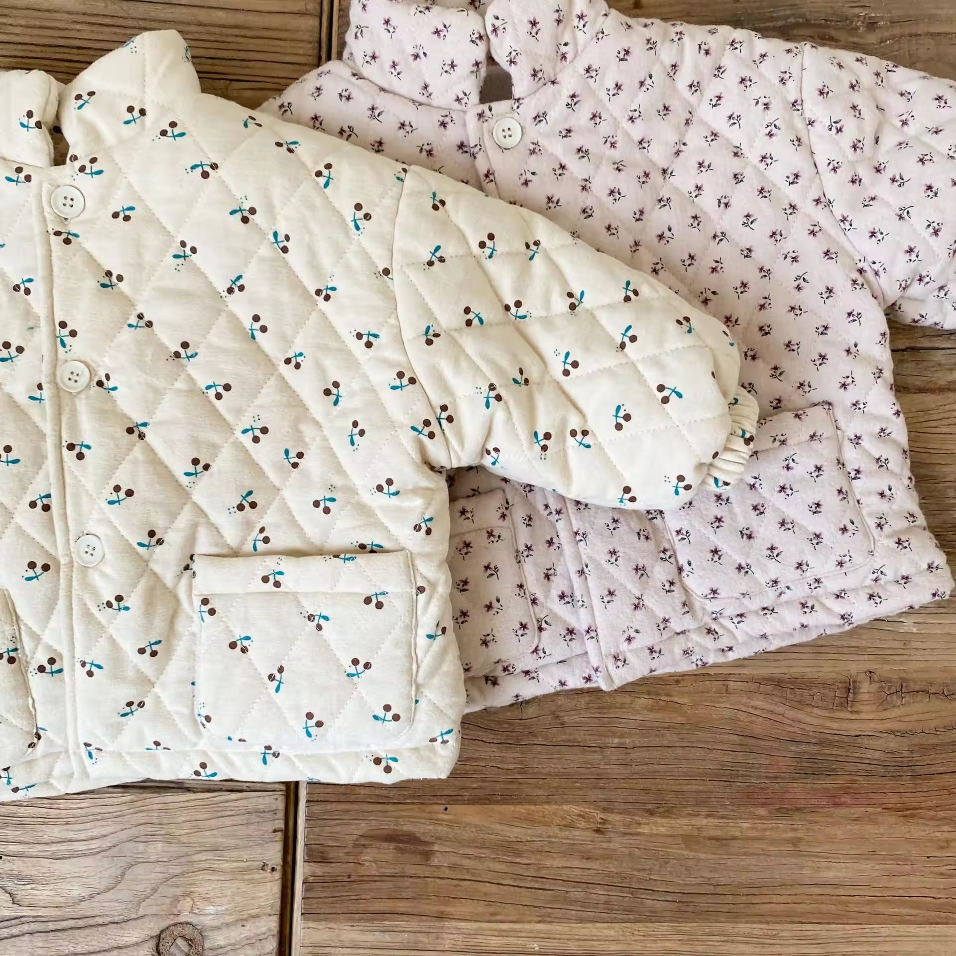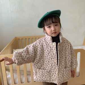 Autumn Winter Girls' Casual Cotton-Padded Baby Coat Floral Pattern Turtleneck Collar Worsted Fabric Infant Toddler Tops
