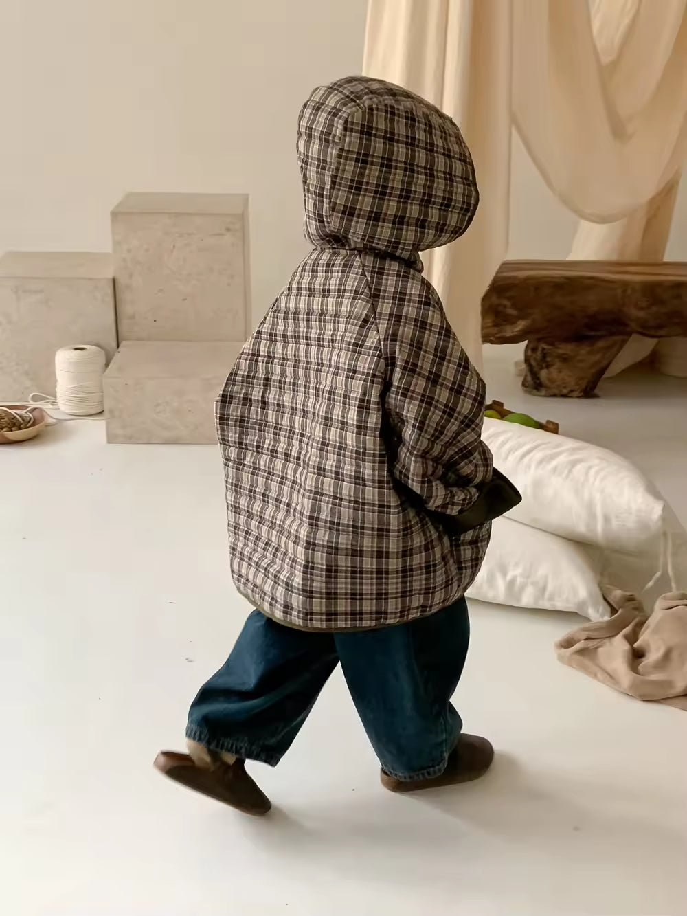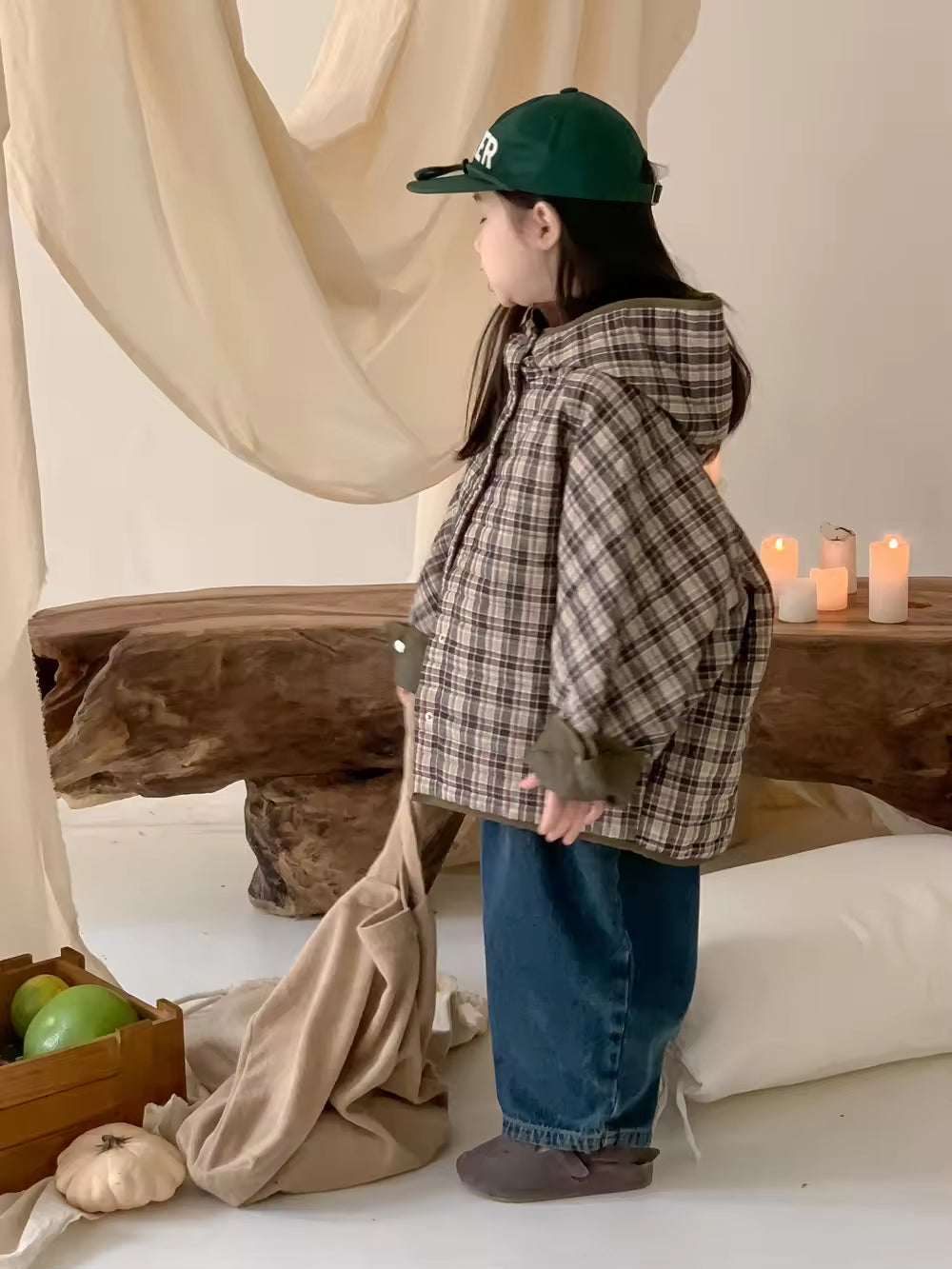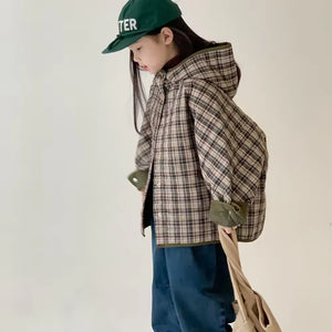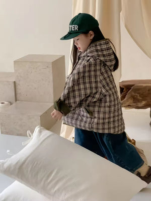 Children's Jacket 2025 Winter Girls Korean Checkered Hooded Cotton-padded Jacket Children's Casual and Versatile Thick Jacket
