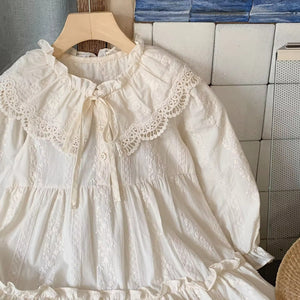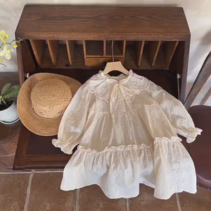 2025 Girls Baby Dresses Long Sleeve Princess Dress with Lapel Lace Fashionable Children's Knee-length Print Baby Skirt