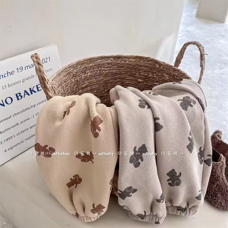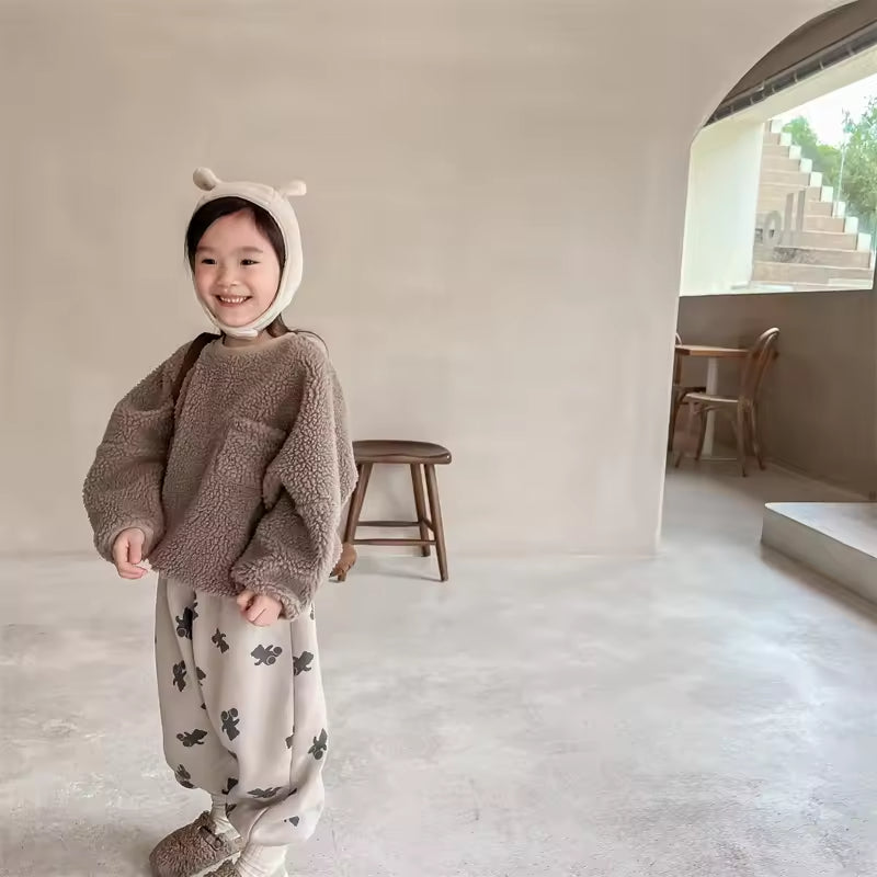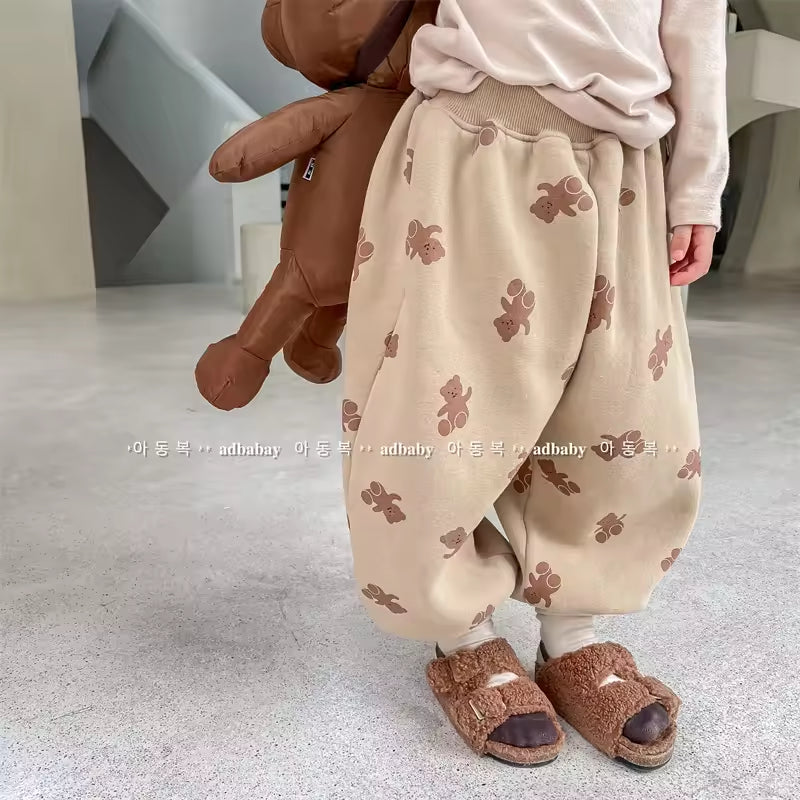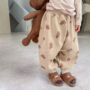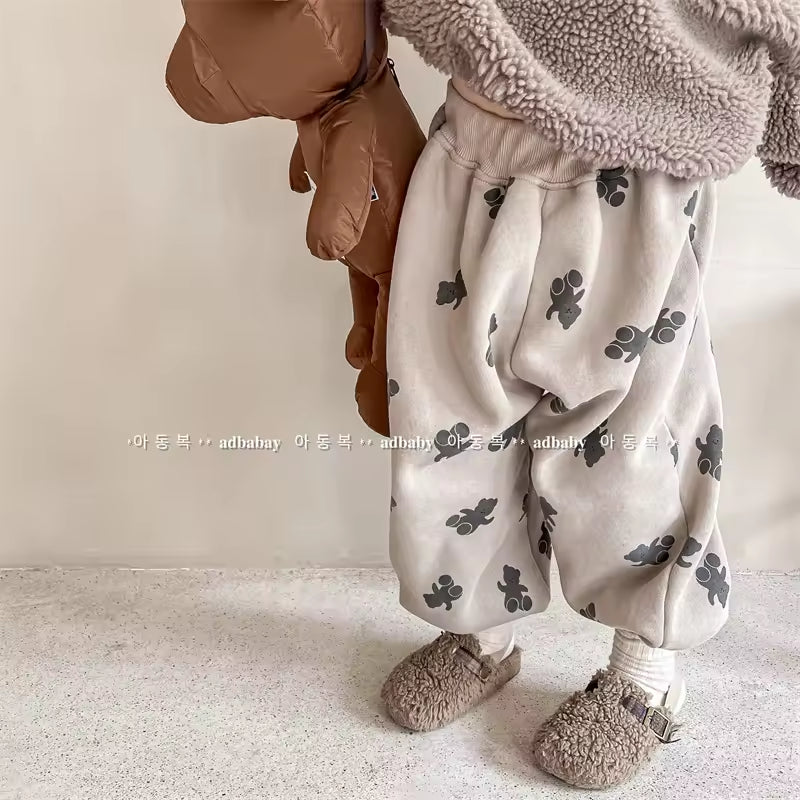2025 Children's Autumn and Winter Korean Fleece Casual Baby Pants for Girls and Boys Breathable Straight Pants