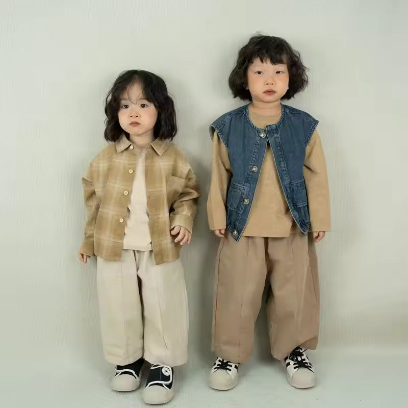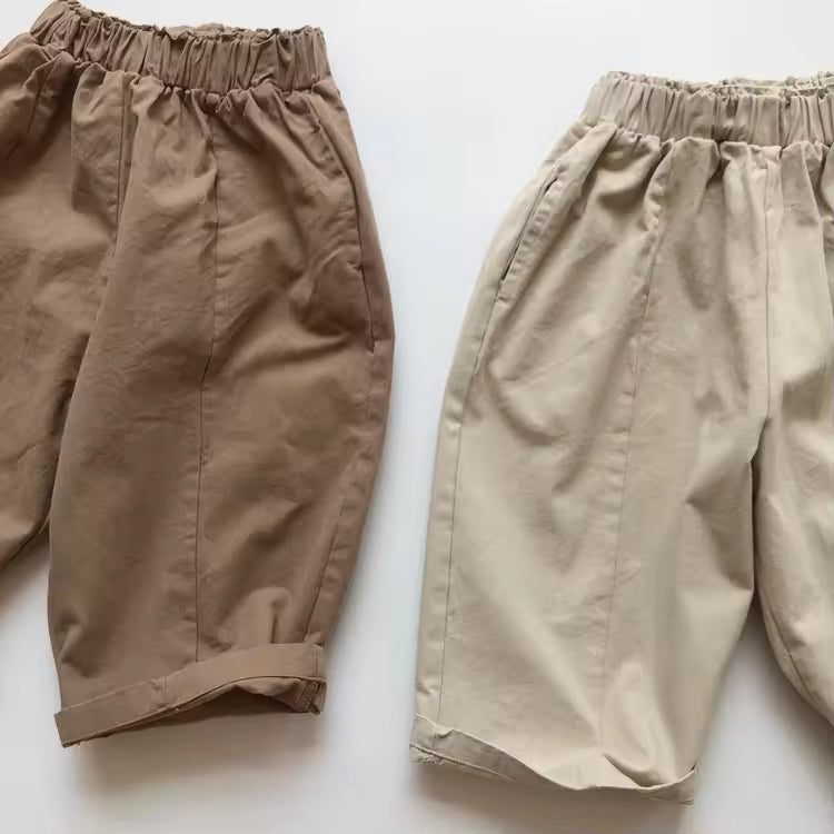 Spring and Autumn New Children's Harem Pants Solid Color Woven Casual Trousers for Boys and Girls