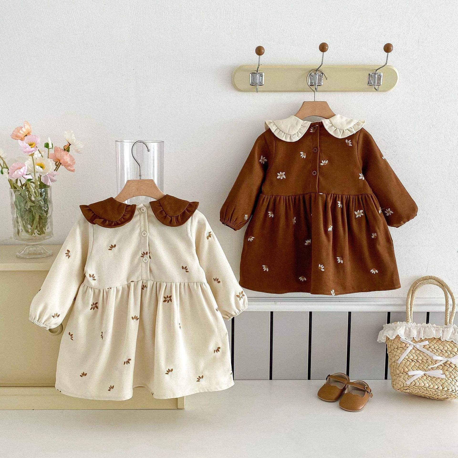 Wholesale New Spring and Autumn New Style Girls Dress Korean Inspired Fully Embroidered Flowers Contrasting Colors Baby Skirts