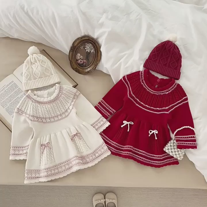 Autumn Girls' Baby Dresses Pure Cotton Knitted Handmade Bow Dress Versatile Slim Princess Dress for Baby Girls