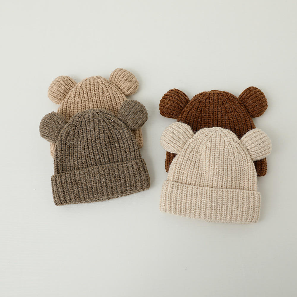 Wholesale Korean-style Woolen Hats for Infants and Toddlers Cute Autumn and Winter Korean-style Little Eared Bear Knitted Hats Baby Hat