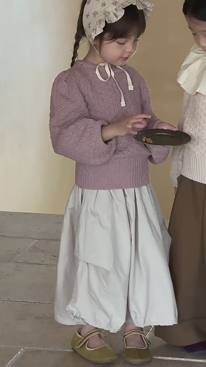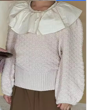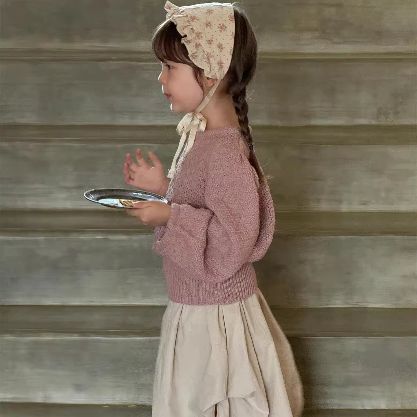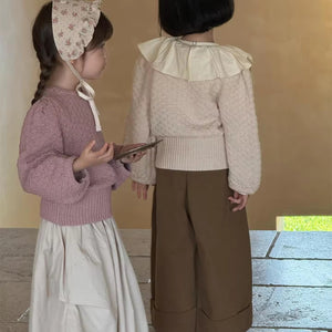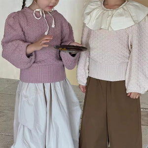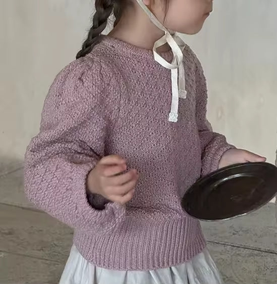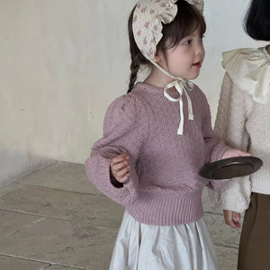 2025 Autumn New Style Baby Girls Sweater Solid Color Puff Sleeve Pullover Bottom Kids Clothing Line Sweater