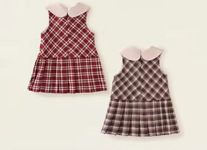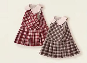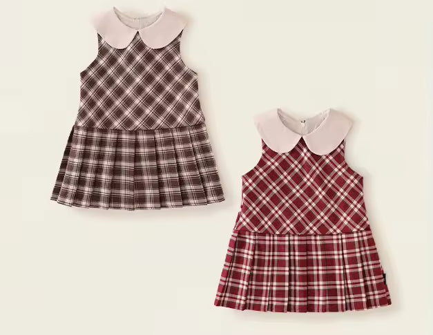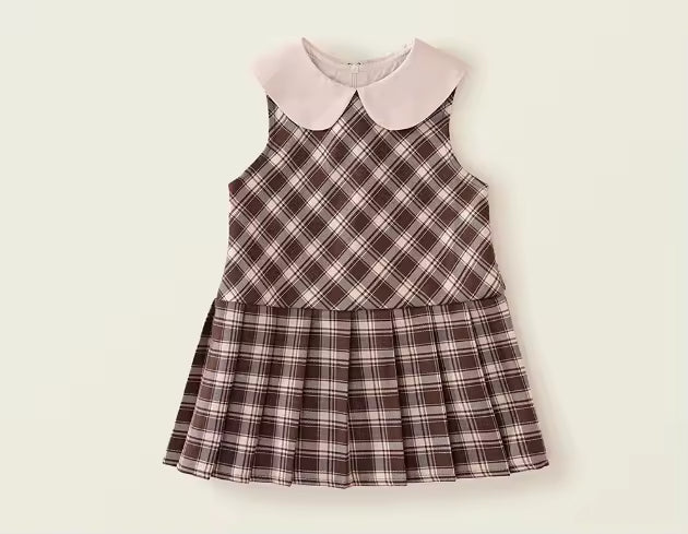 2025 New Girls' Korean-Style Casual Printed Vest Dress Baby Princess Dress Straight Silhouette Pleated Collar for Spring Summer