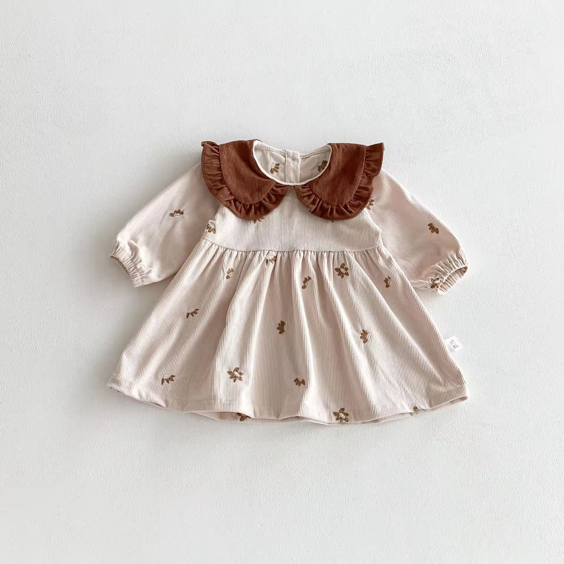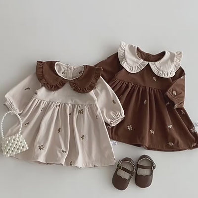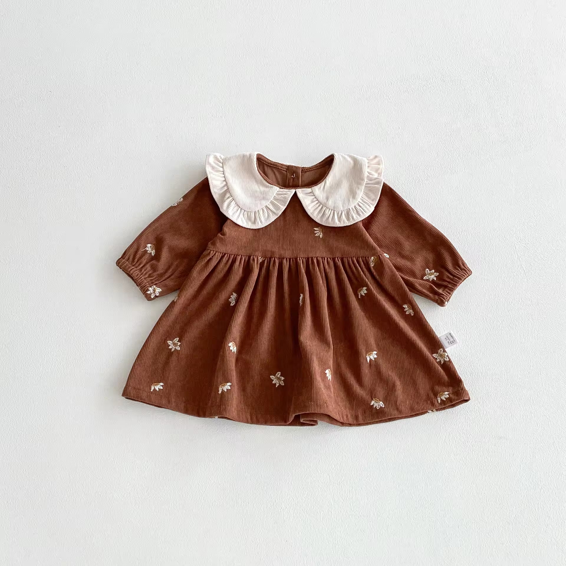 2025 New Spring and Autumn Ins-Style Korean O-Neck Dress for Girls Casual Casual Embroidered Toddler Princess Dress