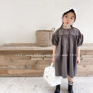 2025 South Korean Style New Fashion Summer Children's Dresses Girls' Casual O-Neck Dress with Long Style Cotton Skirts