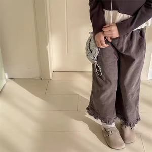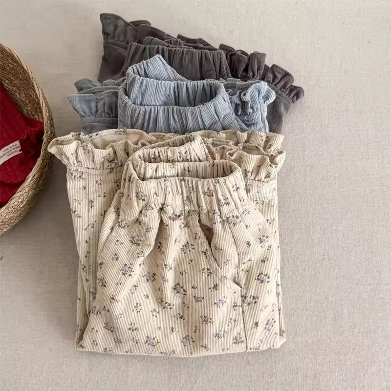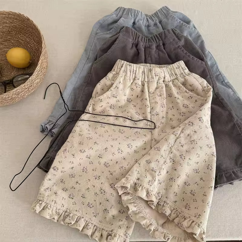 2025 Spring Girls' Corduroy Cropped Pants Baby Wooden Ear Floral Sample Clothes Wide Leg Pants Straight-leg Pants