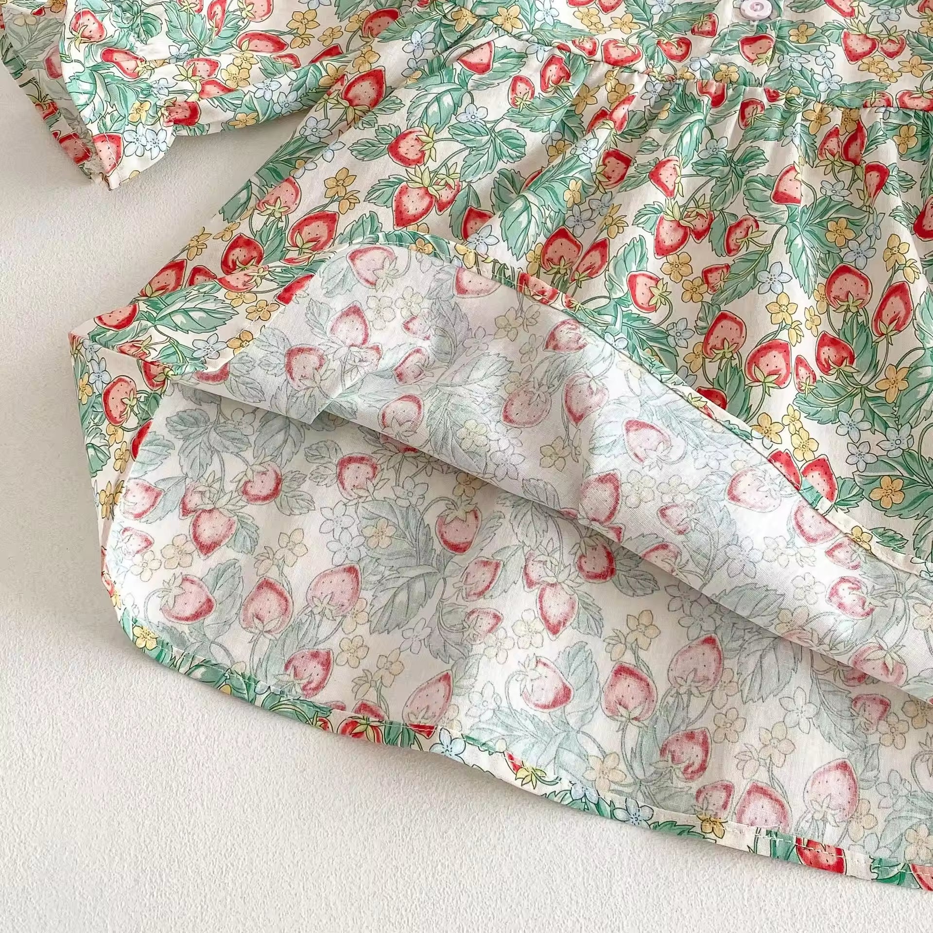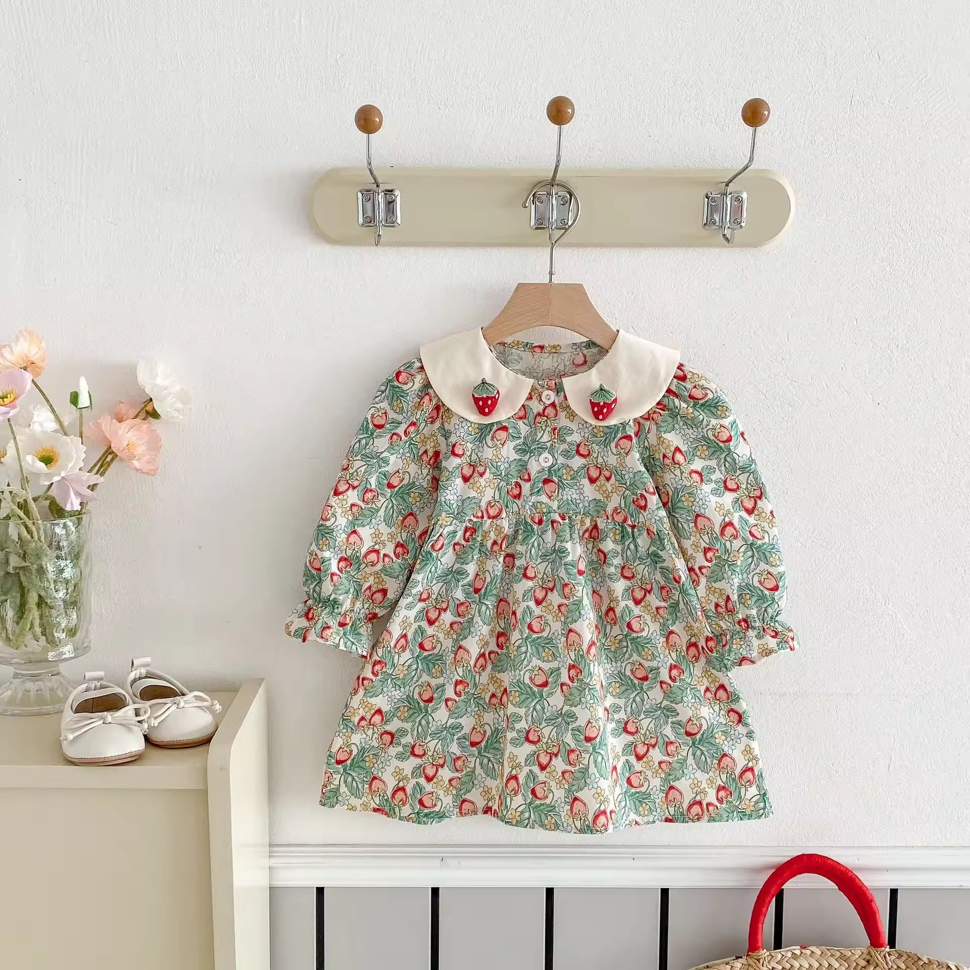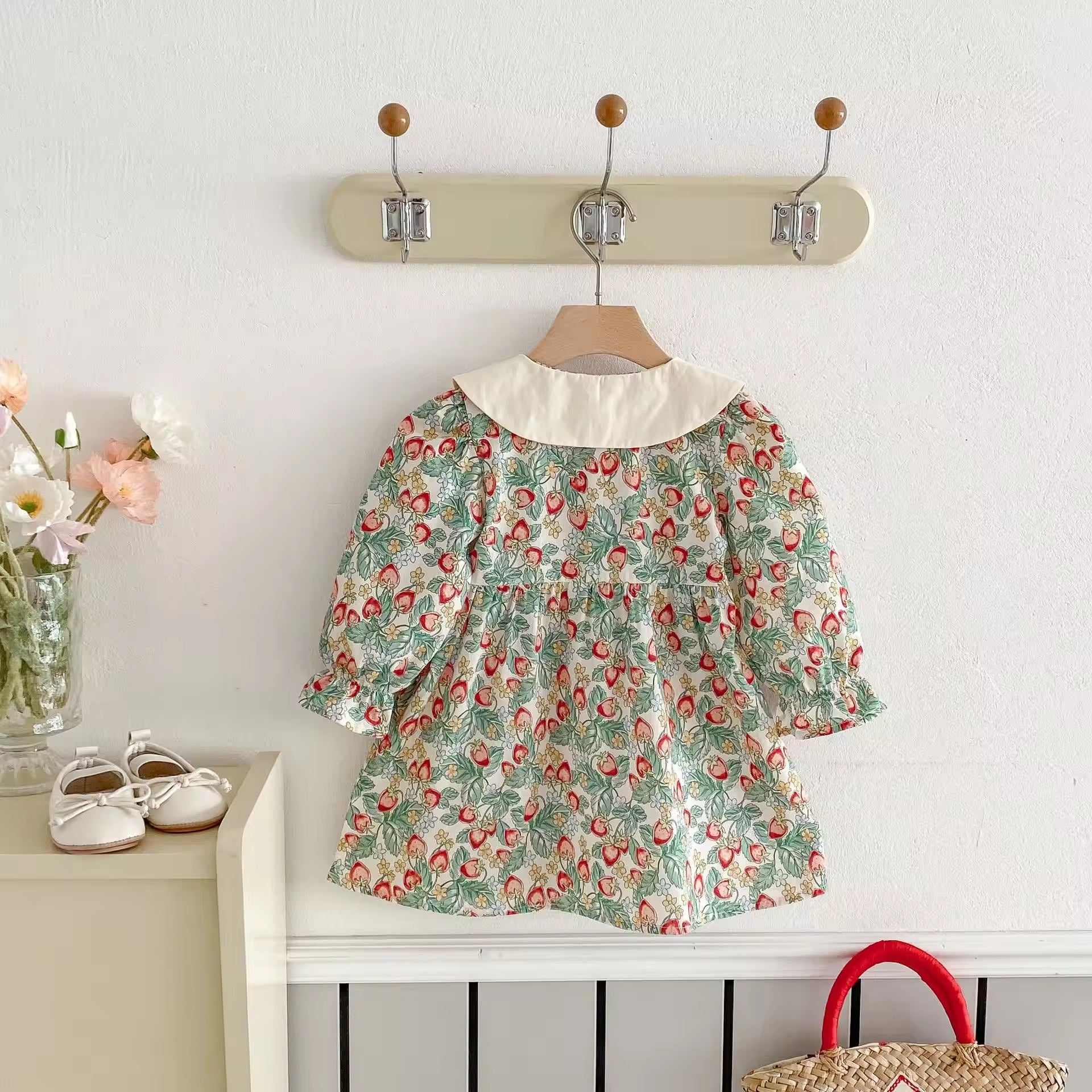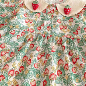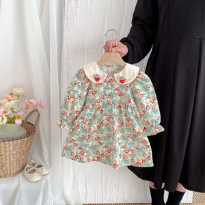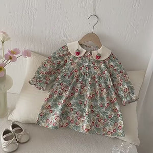 2025 Spring New Korean Style Princess Dress for Girls Strawberry Doll Collar Floral Pattern Sweet Style Baby Girls Dress