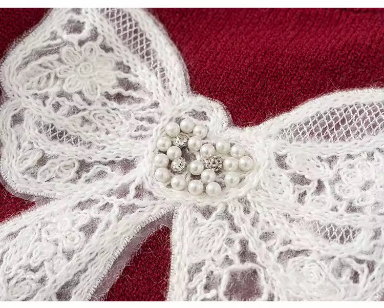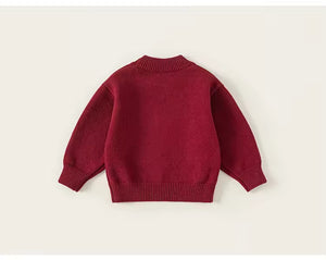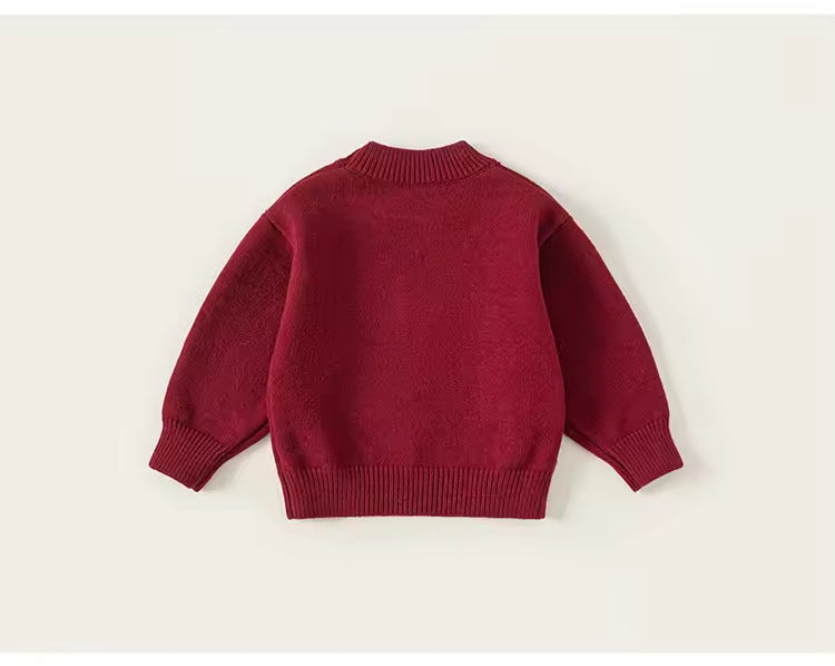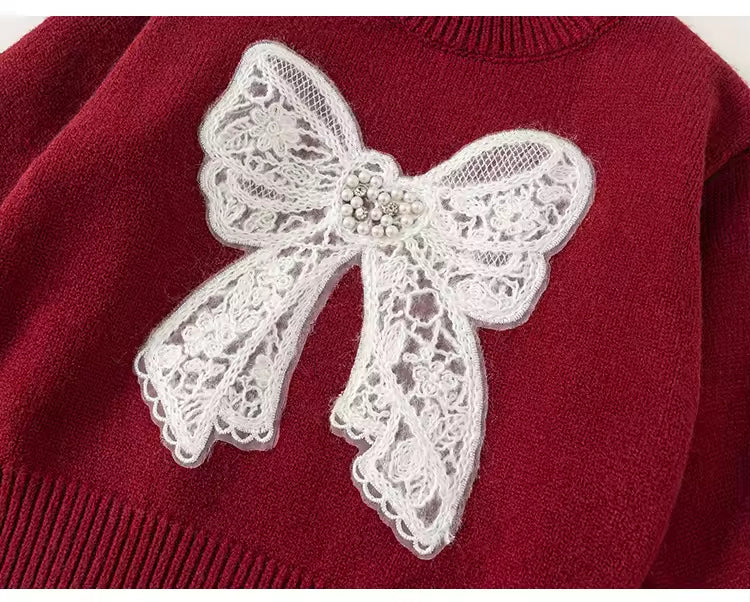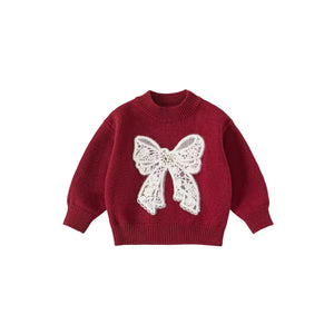 2025 Stylish New Autumn Baby Sweaters Red Girls with Bow Long Sleeve Children's Clothing Knitted New Baby Tops
