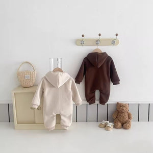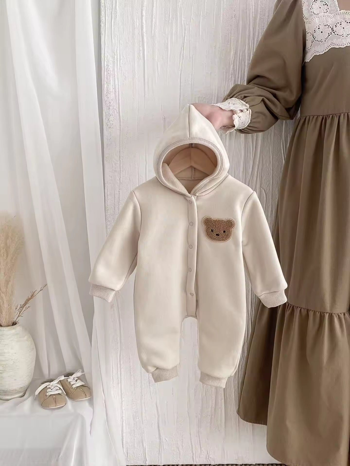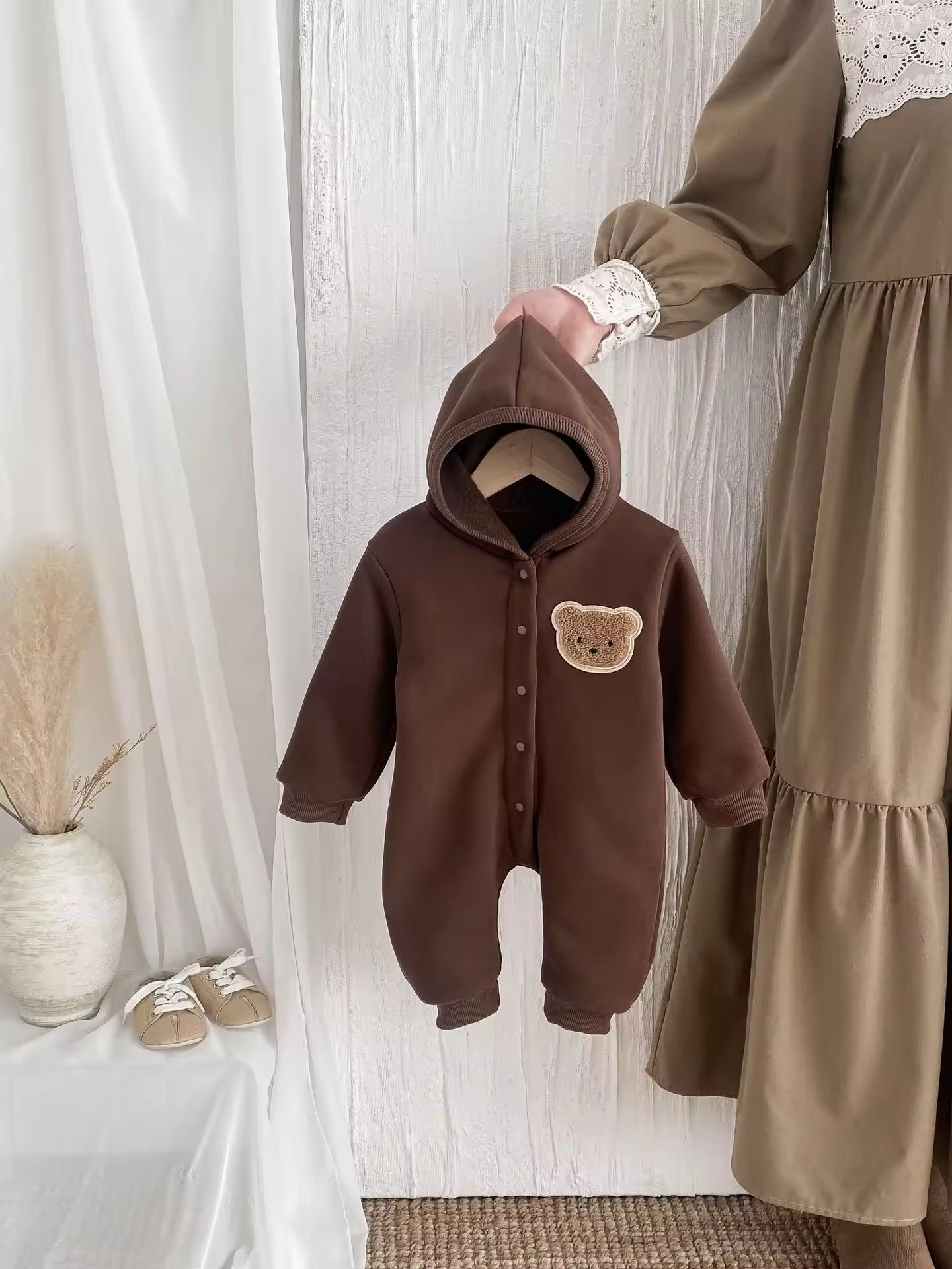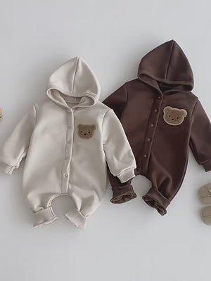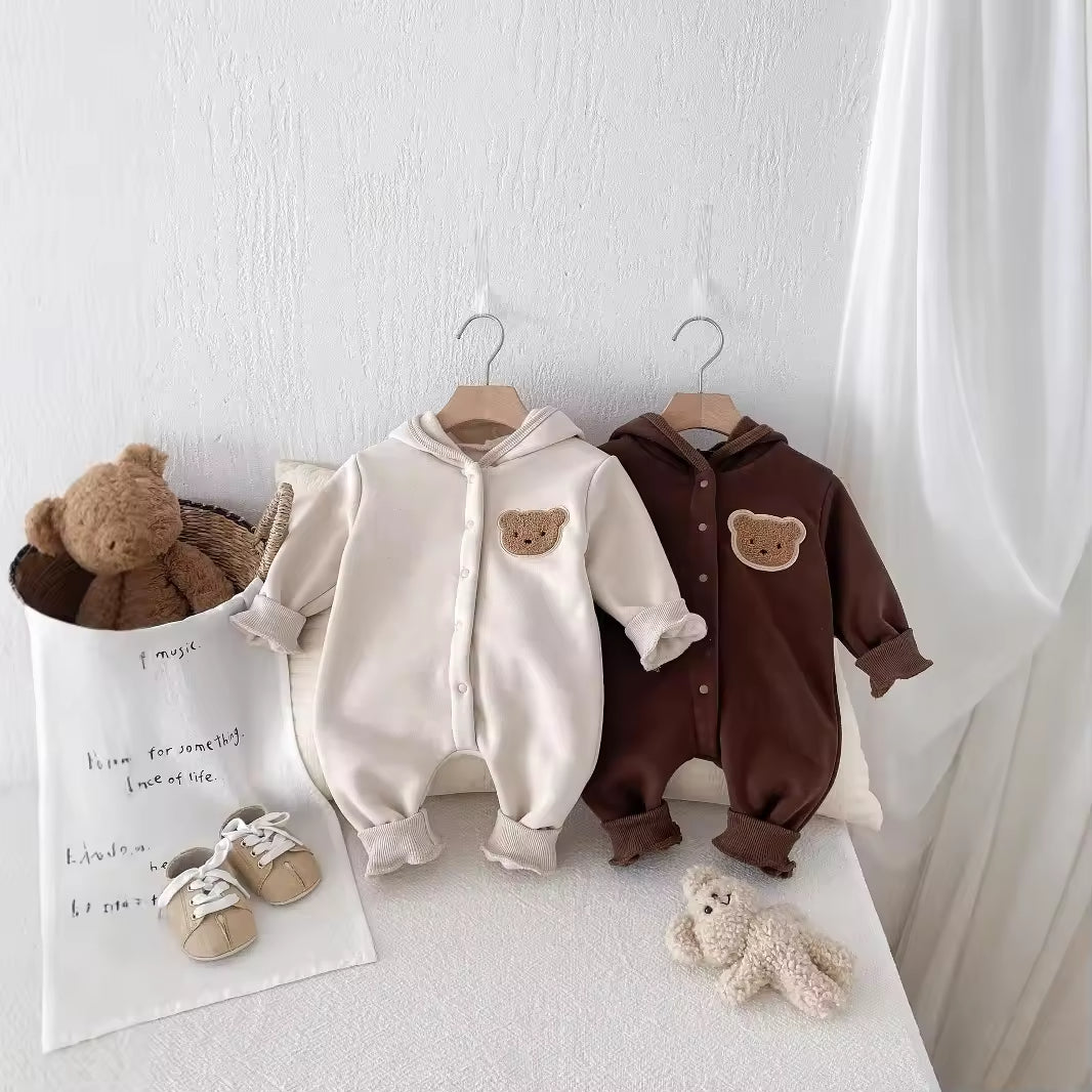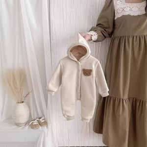 2025 Unisex Newborn Baby Jumpsuit Autumn and Winter Thickened Fleece Cute Bear Pattern Button Warm Baby Rompers