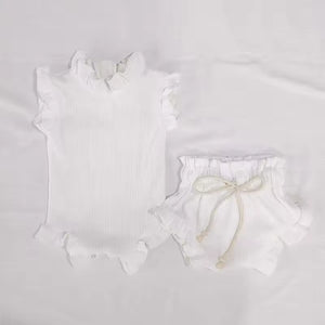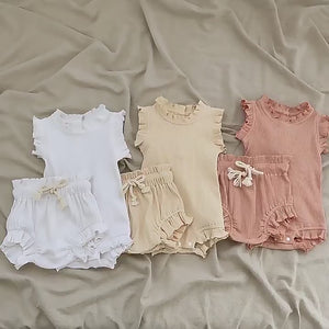 2Pcs Infant Baby Girl Clothes Set Waffle Cotton Ruffle Newborn Vest Romper Tops Bloomer Shorts Suit Baby Summer Outfits Clothing