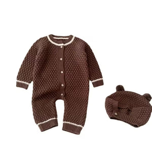 Autumn New Baby Sweater Romper Long Jumpsuit Hat for Boys Girls Cute Cotton Knitted Button Closure Baby Jumpsuits